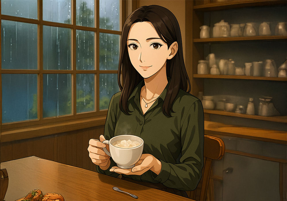 生姜湯と凍えた言葉 夕暮れの《喫茶つむぎ》。外の風は冷たく、扉の隙間から入り込むたびに店内の空気をひやりと揺らした。「寒いなぁ……体の芯まで冷えそう」私は土鍋の火加減を見ながらつぶやいた。 湯気とともに立ちのぼる生姜の香りが、鼻を抜けてじん... -