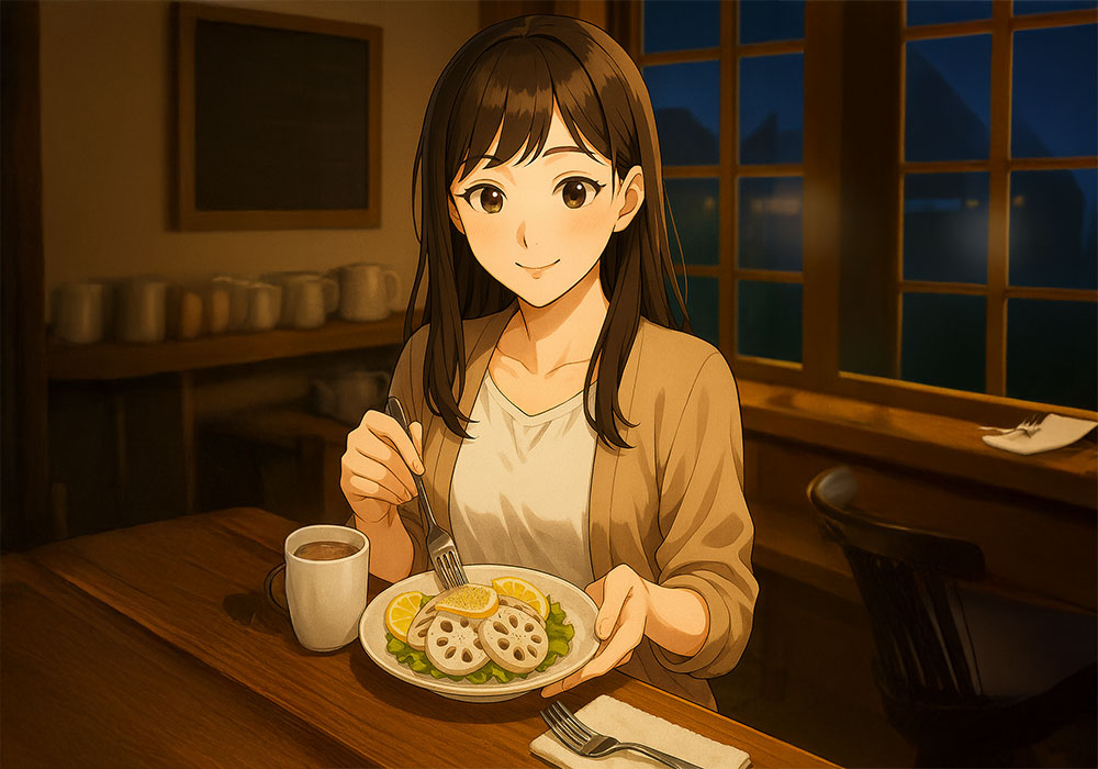 生蓮根サラダと紫の顔色 18時を少し過ぎた《喫茶つむぎ》。窓の外はすっかり暗くなり、冷たい夜風に街灯の光が揺れていた。私はカウンターでホットココアを温めながら、ふっと息をついた。 「ホットココアをお願いします」声をかけてきたのは、仕事帰りら... -