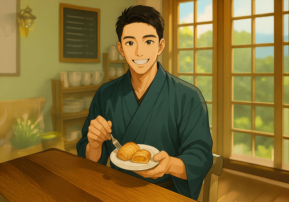 かぼちゃ餡パイと旅館の未来 秋の夕暮れ、街路樹の葉が色づき、窓から柔らかな光が差し込んでいた《喫茶つむぎ》。カウンターの奥では、私は焼き立てのお菓子を冷ましていた。パイの香ばしい匂いと、かぼちゃのほのかな甘みが店内に広がる。 ベルが鳴り、... -