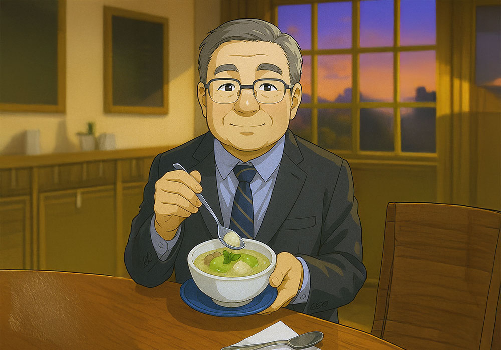 冬瓜と母の食卓 夕暮れの《喫茶つむぎ》。蒸し暑さが残る中、恰幅のいい中年サラリーマン、石田さんがのっそりと入ってきた。ネクタイをゆるめ、スーツの上着を脱ぎながら椅子に腰を下ろす姿には、長い一日の疲れがにじんでいた。 「昔はどれだけ食べても...