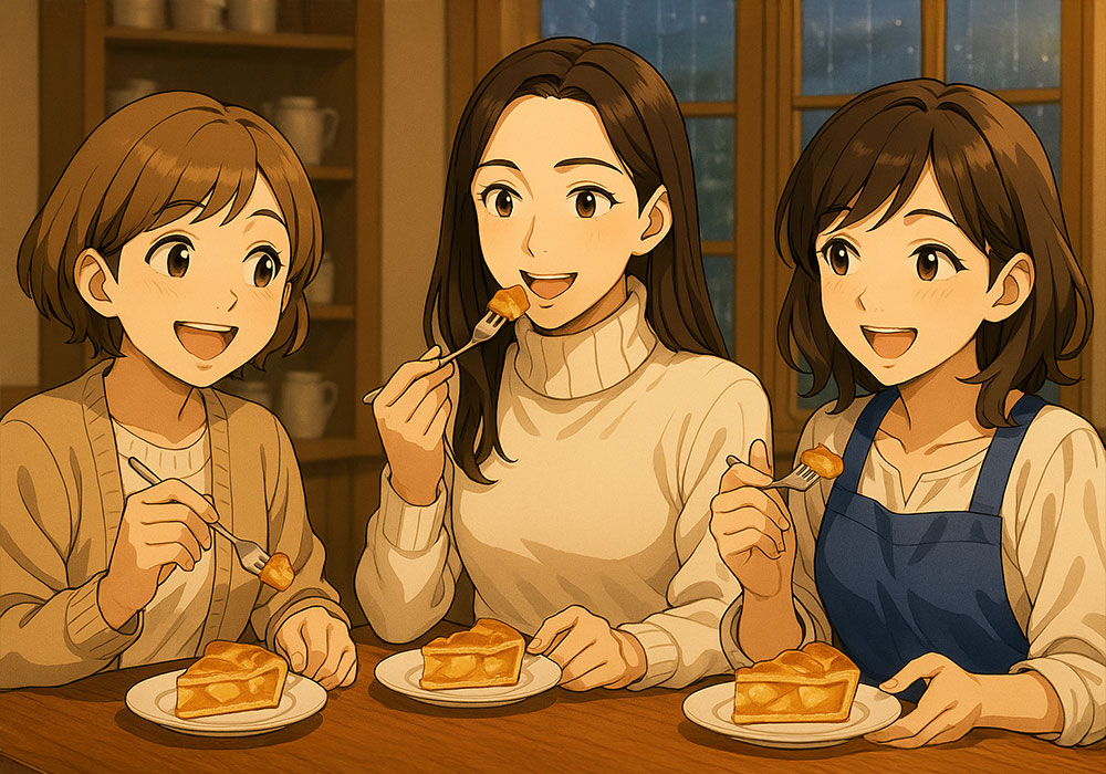 紅玉アップルパイと小さなサプライズ 午後の《喫茶つむぎ》。外は冬の風が木々を揺らし、カウンターの上ではオーブンの中から甘い香りが漂っていた。焼きたてのパイ生地がほのかに色づき、紅玉の赤がガラス越しにきらめいている。 扉のベルが鳴り、明るい... -