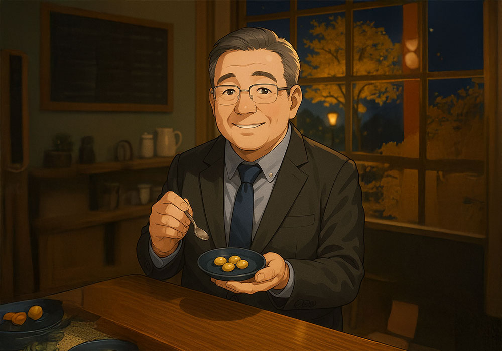秋の夜、《喫茶つむぎ》のカウンターに炒った銀杏の香りが広がっていた。