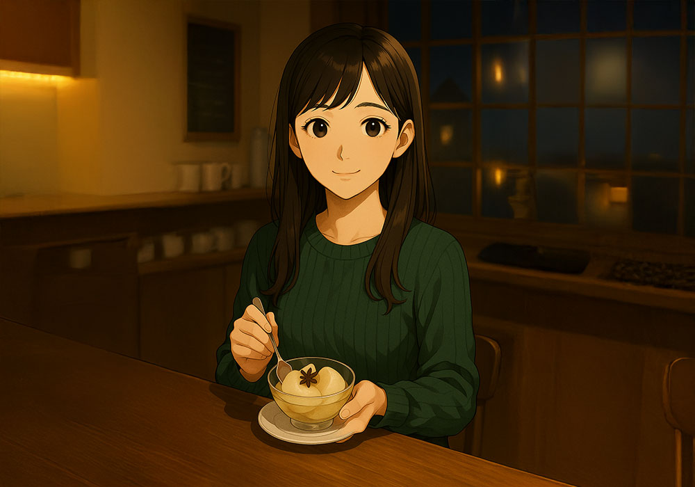 梨の爽やかな甘みと紅茶の香りの中で、彼女の声はかすかに、けれど確かに明るさを取り戻していた。