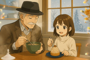 外は冬の風が木々を揺らし、カウンターの上ではオーブンの中から甘い香りが漂っていた。