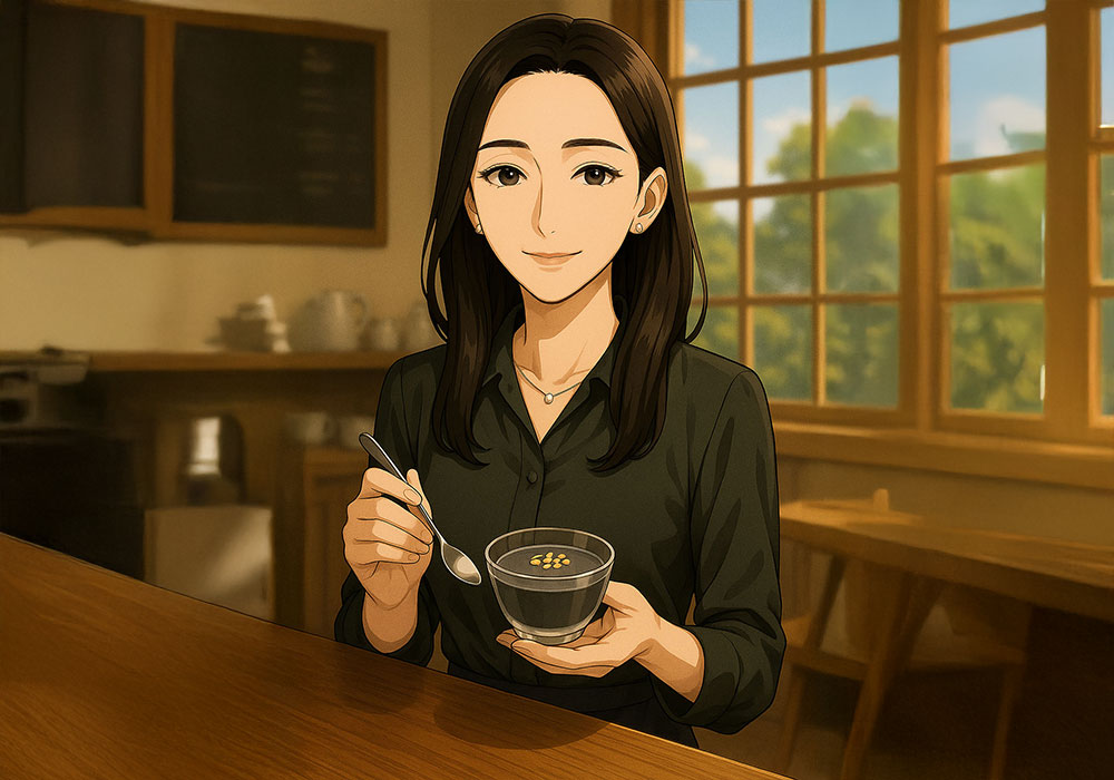 黒胡麻プリンと映る影 午後の《喫茶つむぎ》。カウンターには黒胡麻プリンが並んでいた。表面に黒蜜をとろりと垂らすと、香ばしい胡麻の香りがふわりと漂う。 ベルが鳴り、真理子さんが明るい声で入ってきた。「こんにちは! 今日も元気にしてる?」いつ... -