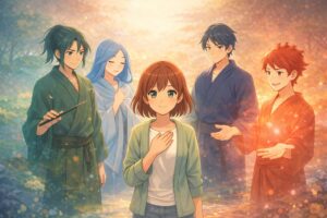 柚葉の前に、燃えさかる焔をまとった青年が立っていた。髪は炎のように揺らぎ、瞳まで赤く燃えている。