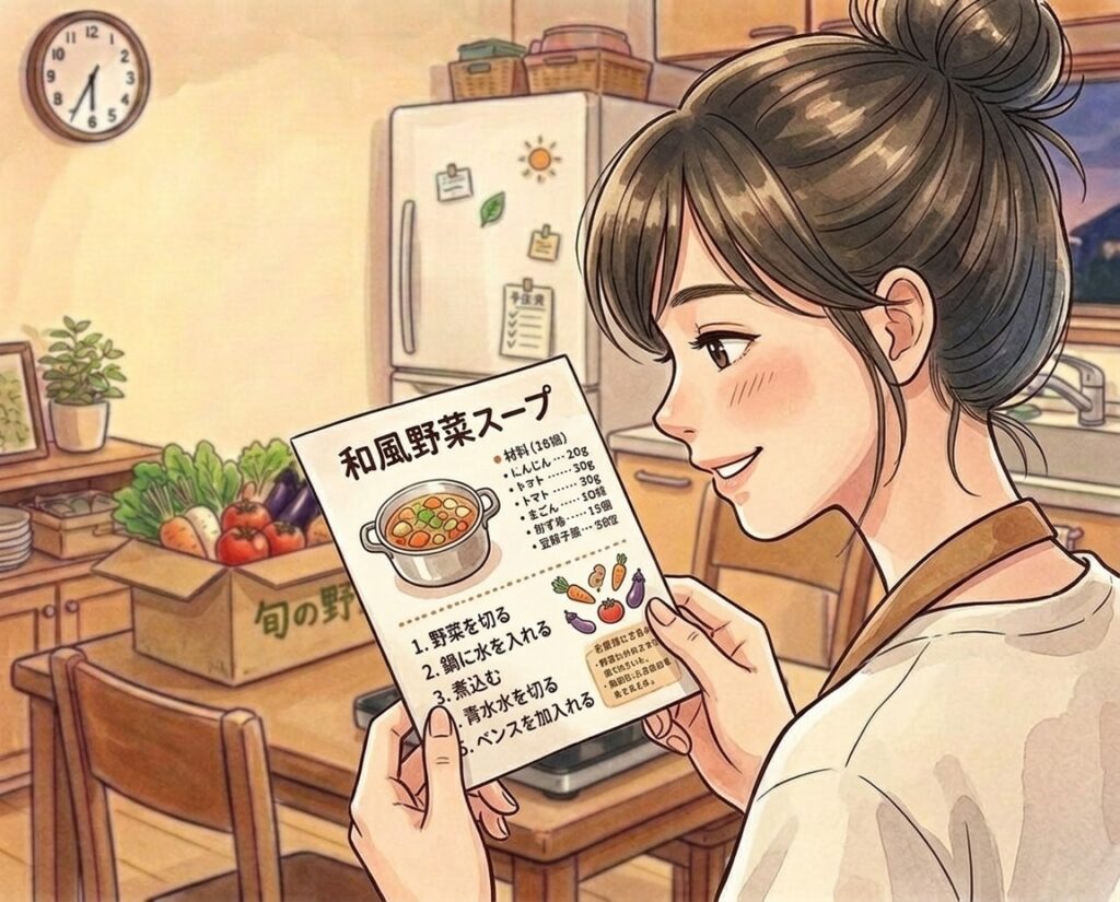 届いた食材にはレシピも付いていて、